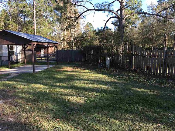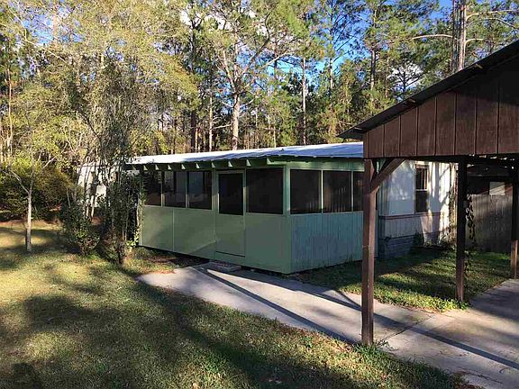 This is a 924 sq/ft single wide mobile home with a nice screened front porch and covered back porch. The driveway off CR 235 has a gate entrance that leads up to a nice covered carport with a concrete slab. The home needs a little TLC, but is overall good shape with central H/A, master bedroom with walk in closet, master bathroom with his and hers sink and an open living room area. The back portion of the property is wooded with a large L shaped pond.