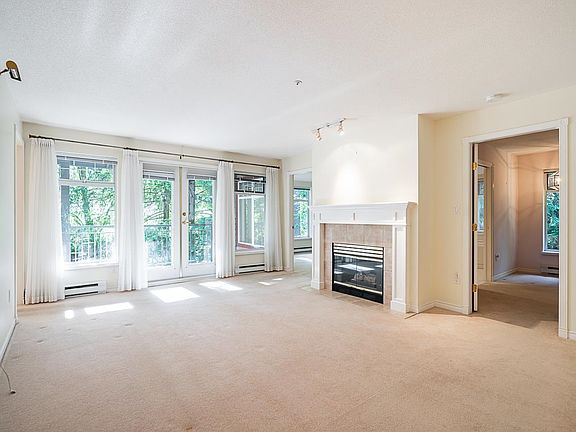 This large 2 bed, 2 bath featuring a generous-sized den that could easily serve as a 3rd bedroom measures 1,452sq.ft. The west-facing residence offers stunning outlook to a lush greenbelt and creek, providing a serene backdrop and privacy for your home. The thoughtfully designed layout places the bedrooms on opposite sides of the unit. Ample storage throughout the home adds to the convenience and practicality. With large rooms and a layout that exudes the feeling of a house, this home is perfect for comfortable living and entertaining. Nestled next to the Northlands Golf Course, the location is ideal for golf enthusiasts and nature lovers alike. Plus, Parkgate Shopping Centre is just a 2-minute drive away, offering easy access to all your shopping and dining needs. Don't miss this out! Available to show: Thursday June 20th, 10am-12pm. Open House Sunday June 23rd 2-4pm