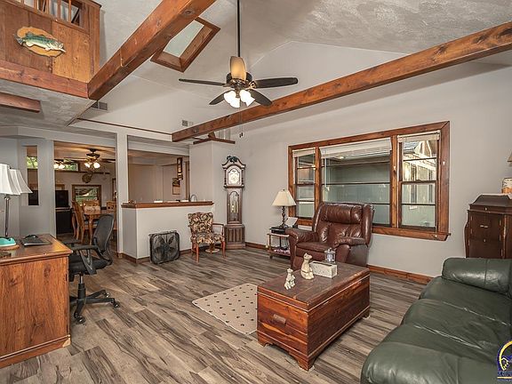 Nestled in the heart of Baldwin City, this captivating 1.5-story home is a blend of timeless elegance and modern convenience. Boasting 4 bedrooms and 2 full bathrooms, this spacious 2,338 sq ft residence is situated on a sprawling nearly 1-acre city lot, offering a private retreat amidst nature's embrace. Originally built in 1940 and thoughtfully renovated in 1992, this home retains its classic charm while featuring modern upgrades. Custom-made cabinets and kitchen island elevate the heart of the home, providing an ideal space for culinary enthusiasts. A sliding door in the kitchen opens up to a wood deck, seamlessly connecting indoor and outdoor living, perfect for entertaining guests or simply soaking up the sun. The generous main floor encompasses a laundry area for added convenience and showcases a spacious master bedroom suite, providing a tranquil haven. Stepping outside, a covered patio in the front of the home offers an inviting space to unwind, overlooking the lush yard adorned with mature trees, providing natural seclusion from the road and neighbors. A carport and multiple small outbuildings ensure ample storage for all your needs. Recent upgrades include new kitchen counters and backsplash in 2023 and a new gas furnace in 2019. Commuters will surely appreciate the proximity to highways 56 and 59, offering easy access to nearby destinations. Call for your showing today!