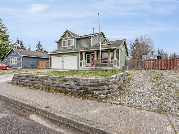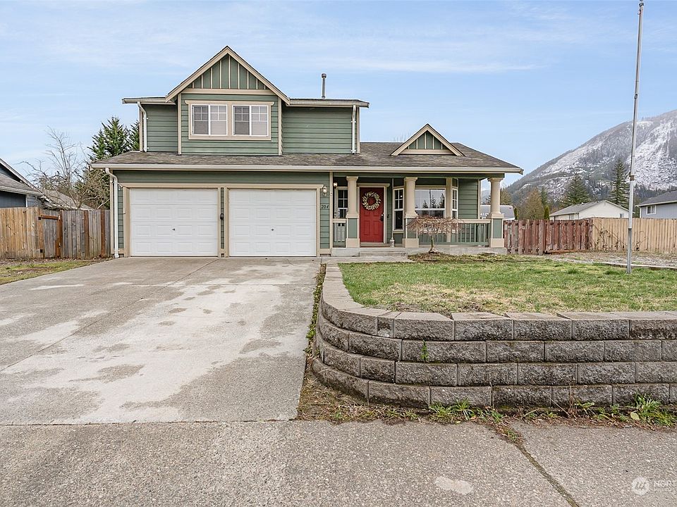Gold Bar is known for its stunning mountain views, and this home will not disappoint! Right off the great room are stunning French doors that open up to a fully fenced backyard with a metal roof gazebo and, right next to it, a fire pit to roast marshmallows, two sheds, and a playhouse. All bedrooms and the primary suite are conveniently located upstairs. The kitchen features stainless steel appliances and ample room to entertain guests. This home also includes a Tesla charging station, RV pad, and air conditioning to keep you comfortable in the summer. Everything you need right here!