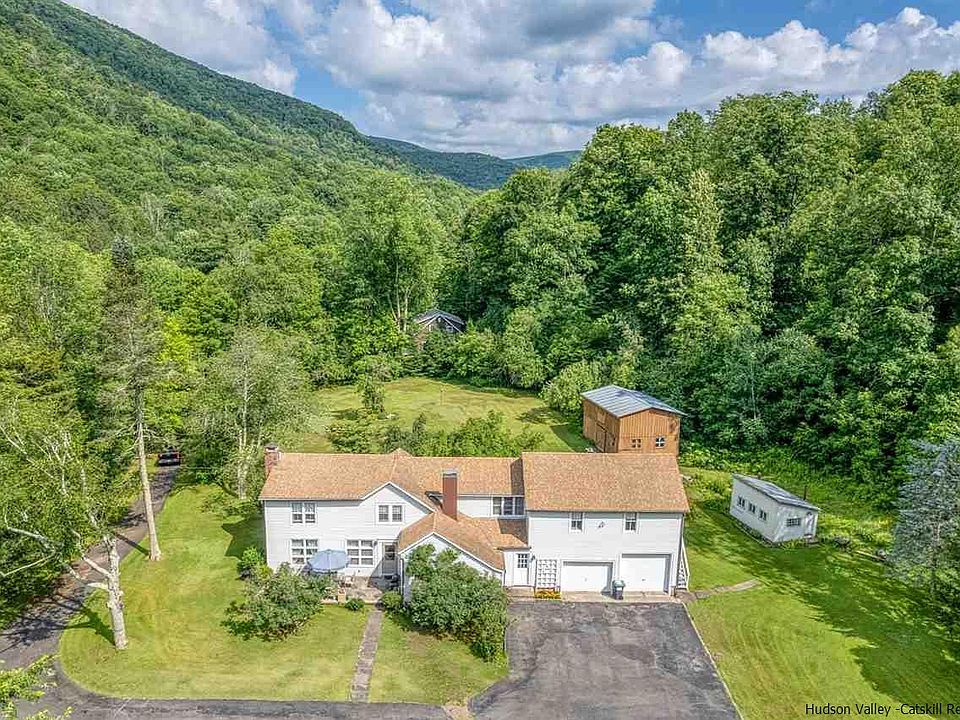 You'll feel the true essence of the Catskills as you make your way through the valley where the Esopus Creek winds and the mountains rise above, you'll take in the fresh air and leave your stress behind arriving at your ultimate Catskill sanctuary. Full of character, this home is sited well off the road in a peaceful setting. The spacious home is filled with charm and warmth and boasts a gorgeous stone fireplace, wood beams, fir floors, built-ins, plus some knotty pine and slate...it combines modern updates with original details creating a very homey feel; its original portion goes back to 1857. There is a fantastic bonus attic space which is huge - it contains beams and a cathedral ceiling with an inside and outside entrance...imagine finishing it off to offer even more living space - wait until you see it, you'll be thinking of so many possibilities!, The 9+ acres also includes a barn with horse stalls, a small workshop building complete with electric and wood heat and a detached 2 bedroom guest or rental house with separate utilities - great for supplementing your income or for those large family gatherings. What else could you want? How about beautiful grounds with mature landscaping, fruit trees and an inground swimming pool! A beautiful home for all seasons; to relax, enjoy nature and friends and family...a short drive to the Belleayre Mountain Ski Resort or into the quaint village of Phoenicia for a little shopping, a bite to eat or to the theatre. Or, if you have an interest in fishing or tubing the Esopus Creek, its all close by!
