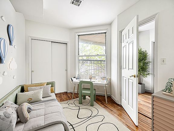2-BEDROOM GREENWOOD CONDO, PRIVATE PATIO, RE TAX $4 A MONTH! This 2-bedroom / 1.5-bathroom condo is a unique offering, with 650 sq. ft. of living space, a private outdoor terrace, and a storage unit in the basement that transfers with the apartment. A sensible layout, the living room opens onto the private terrace, an ideal spot to enjoy your morning coffee and some fresh air. The kitchen is equipped with stainless steel appliances including a stove, dishwasher, and microwave. There are 1.5 bathrooms and if you like, you can convert the powder room to a laundry room. Both bedrooms are equal in size, featuring large closets and windows that overlook the terrace. The apartment comes with central air and heat, as well as a smart intercom system. For convenience, there is a laundry room in the building. With extremely low common charges and taxes, plus a 421-A tax abatement (real estate tax is $4 per month!) in effect through 2030, this apartment is a perfect starter apartment or ideal for the savvy investor. And…pets are welcome! Located in Greenwood Heights, this charming neighborhood is situated close to Prospect Park, Greenwood Park and Industry City. The condo is conveniently located close to many living conveniences like food shopping, bakeries, cafes, and restaurants, and is only minutes away from the D, N, R, W subway line and Citibike stations. Photos are virtually staged.
