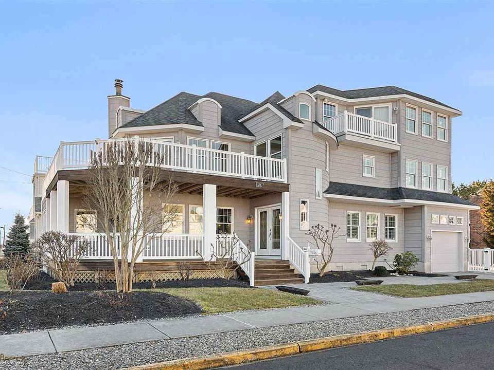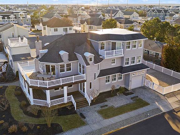 Gorgeous 5 bedroom 5 full bath, two half bath 3 story home located on a very desirable corner lot! This large home has everything you could ever ask for. Located a short block to the beach path and not too far out of town this home's central location on the island places you close to everything! Also situated across the street from one of New Jersey's last Maritime forests the quiet location will make relaxing a breeze. Cedar impression siding, mahogany decks, and mature landscaping with three zone irrigation system gives this home a very appealing look. As you enter the inviting foyer you are greeted by tile floors and a helical staircase that stretches to a small landing before taking you the rest of the way to the second floor. To the left of the foyer is the family room with sliding glass door that provides access to the large first floor deck. Further down the hall is the first of 5 bedrooms which are all suites. This bedroom's bathroom is finished with tile flooring, tile shower, and granite vanity top. Further towards the rear of the first floor is a sitting room, or second family room, with sliding glass door to the inground saltwater pool. Finished with tile flooring and a large wet bar its location is perfect for summer pool parties and evening barbecues in the yard. The wet bar has a small beverage refrigerator, microwave, and granite counter tops. To the right of the sitting room is the door to the garage, perfect for storage or maybe a golf cart, and just to the right of that is the second bedroom. This large suite comes with plantation shutters on the windows, room for a king bed, tile floors, tile shower, and granite vanity top. Upstairs to the second floor you will find soaring ceilings in the living room and dining area. This amazing space is only possible because of the large 60' x 110' corner lot the home sits on. The open design is perfect for entertaining, large family get togethers, or simply just relaxing after a long work week. At the top of the stairs is a bar equipped with a Uline wine cooler, sink, and granite top. To the left is the spacious kitchen with glass subway tile backsplash, center island with salad sink, DCS stainless steel microwave range and oven, Miele Dishwasher, and double sink. A pantry helps complete this chef's kitchen. Just off the kitchen is a small deck built for grilling. A natural gas line was run directly to the deck for connection to a grill. No need for propane tanks ever. To the rear of the second floor is the powder room with marble floor and pedestal sink. Just past the powder room are two more bedrooms that are also suites. Finished with tile floors and showers as well as granite tops on the vanities. Lastly is the private third floor Master Suite. This large inviting space will be sure to please you. The master bedroom comes with an attached office, private balcony, large walk-in closet, makeup vanity, and gorgeous bathroom. The bathroom was finished with a soaking tub, granite vanity top, his and her sinks, tile flooring, and tile shower with glass enclosure. Some additional features are central vacuume and a wireless alarm system with window and door sensors as well as motion detectors on each floor. The pool heater was replaced 2 years ago. The home is occupied year round so kindly give 24hr notice for all showings. Sold mostly unfurnished see associated docs for inclusion list. This home will not last long. Link to 3D tour provided in listing. Don't miss your chance to own a piece of the greatest shore town there is!!