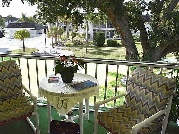 Are you looking for a winter retreat? Swim all winter long with a heated pool, Beach is about 10 miles away...Open views of the pool and the lovely gardens and shuffle board court are just outside the balcony. Enjoy this upstairs, 2 bedroom 1 bath, light and bright unit with Newer Air Conditioning and Newer Refrigerator. Furnished. Laundry mat and Club house with Heated Community Pool are around the corner of the building. 1 Small Pet is allowed.