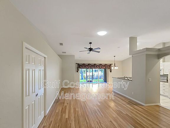 Discover the perfect blend of comfort and style in this spacious villa, located in the highly sought-after 55+ community of The Palms of Manasota. This beautiful home features 2 bedrooms, 2 bathrooms, a versatile den/office, and a two-car garage. Enjoy stunning water views and the tranquil sights of local wildlife from your private, screened-in lanai. The home's open-concept layout is perfect for entertaining, with elegant bamboo flooring flowing throughout. The primary suite is a true retreat, complete with luxurious designer closets. Nestled in a peaceful, welcoming neighborhood, this villa offers a serene lifestyle that is conveniently close to major routes, including US19 and the Skyway Bridge for easy access to St. Petersburg and Tampa, as well as US301 for quick trips to Bradenton and Sarasota. Don't miss the chance to call this beautiful home your own! Schedule a viewing today. Please note: A $35.00 resident benefits fee will be added to the monthly rent. Available for an immediate move in once approved. Amenities: