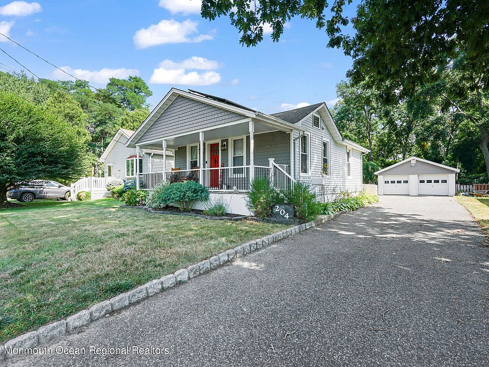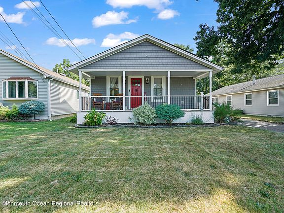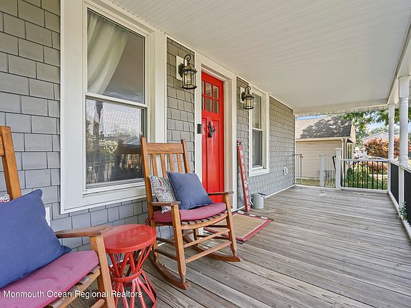 Introducing this fabulous Neptune City charmer with rocking chair front porch on a quiet dead end street. Features include 2 bedrooms and 1.5 baths. The home was fully updated in 2018 with white kitchen, granite counter tops, hardwood floors that flow into living area, accented with a vaulted ceiling. Master is complete with a barn door entrance to a private half bathroom. Full basement is an added feature for extra storage. Mud Room flows out to an oversized driveway and detached two car garage with side backyard entry. Come see for yourself!
