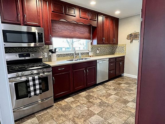 1,580 sq. ft of finished space, (884 upstairs & 696 downstairs) as well as 2 Bath, 2 bed with a 3rd non conforming bed downstairs. This house is located in a great and quiet neighborhood of DeWitt. Little Trees Park is less than 1 block away with playground, basketball court, and baseball diamond. -New Roof in 2016 -New carpets in 2018 -Modern kitchen with cherry cabinets, new countertops, pantry cabinet & all stainless steel kitchen appliances. -2 bathrooms -Updated windows in all of house -Finished Waterproofed basement with living room & non-conforming bedroom. -Front deck with view of park -Backyard patio -1.5 Car Garage -Central A/C Air