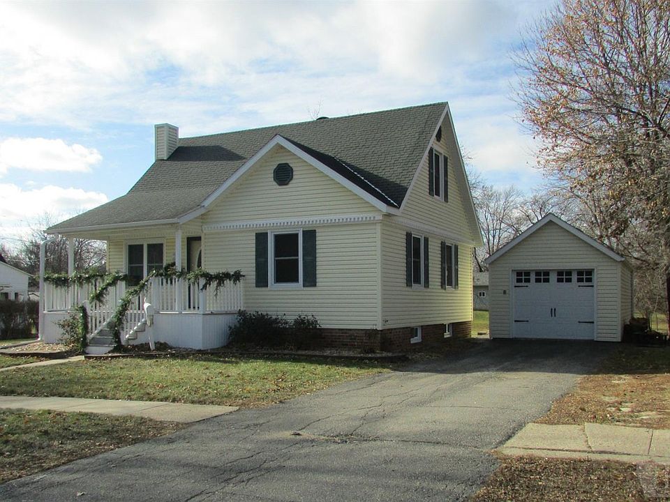 Cute Bungalow! Many updates including doors, windows, siding, roof, front porch, and electrical to just name a few. Main floor features 2 bedrooms, full bath, living room and eat in kitchen. Upstairs features a bedroom, half bath and landing area for office/reading room/toy room. Full basement.