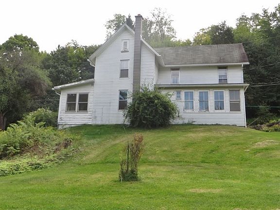 This home has great potential. All natural wood work, hardwood floors, heated sun porch, closed back porch, 2 story 1 car garage, 20x36 chicken house which could be a storage or work shop area,large eat in kitchen with a room off that could be a dining room or office area, take your pick. Nice old pantry with the original built in cupboard that could also be the laundry area as the hook ups are presently in the kitchen. Home is located on a quiet dead end street,with a nice size yard. Harmon coal stove in the basement for supplement heat. There also is a covered well on the property