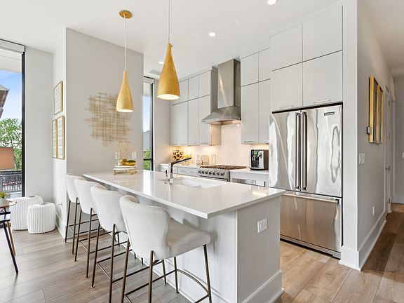 Exquisite modern living at the Novello, off of West End! Fully renovated in 2023. All new 9-inch plank flooring, cabinetry to the ceiling, gourmet kitchen with Viking appliances, new free-standing tub in master bath, new tile and showers, new light fixtures, remote-controlled blinds and a new tankless water heater! Beautiful den with floor to ceiling windows and a gas fireplace. A chef's dream kitchen with a large island and pantry. Two bedrooms, two full baths, office/flex room, and a separate dining area. The spacious utility room has a storage closet as well as a utility sink. Enjoy the indoor and outdoor common area perfect for entertaining on the fourth floor. Also, on the fourth floor you will have a secure 5x12 storage room, complete with Elfa shelving. In the secure parking garage, you have three designated parking spots. This prime location allows for walkability to local restaurants, Centennial Park, and a dog park, convenient to Vanderbilt and St. Thomas Hospitals.