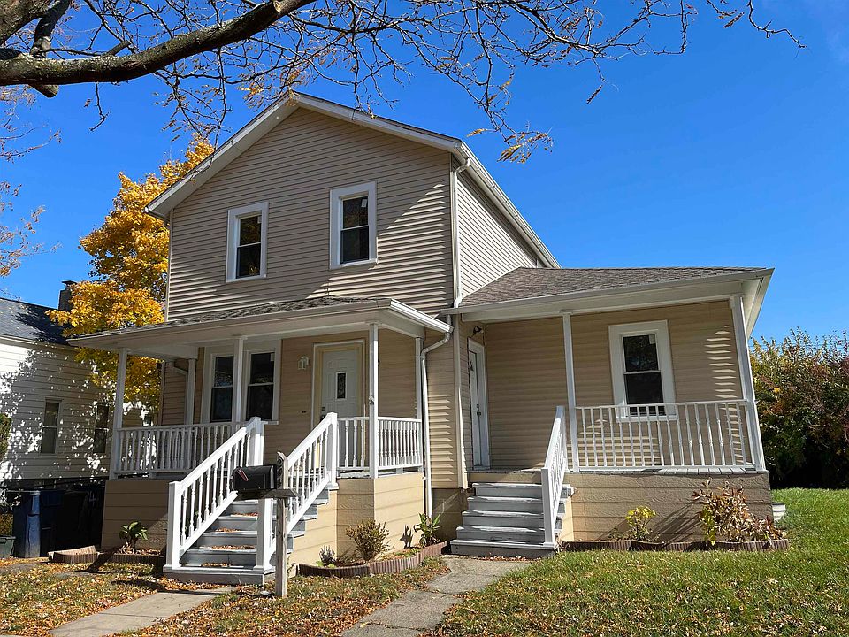 lBack on market- financing fell through What a value for this home This completely remodeled home has all new windows, siding, flooring, kitchen, and bathrooms. There are two bedrooms and a full bath downstairs and two more bedrooms, one with a large sitting room and huge walk in closet, and another full bath upstairs. In addition, there is a first floor laundry, two porches, a fenced in yard and a garage. At the end of a quiet street and easily walkable to beautiful uptown and downtown with never ending dining choices and activities This turn key home is a must see