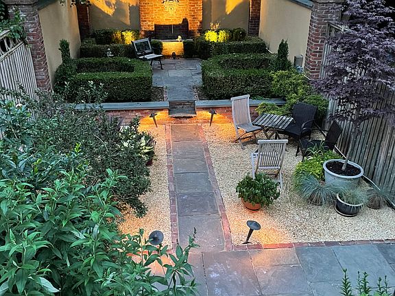 GARDEN APARTMENT IN 1860s TOWNHOUSE. Primary bedroom opens to garden with fountain, lights, Japanese maple tree and Weber gas grill. GE washer (4 cu.ft) and dryer (6 cu.ft), LG french door refrigerator (with ice maker) and Bosch SilencePlus dishwasher. Air conditioners provided. Access to shared basement work-out room with bench and dumbbells. Tenant storage space, approx. 6x5x3, in basement and another storage space for a bike. Ft. Greene Park is 2 short blocks away. 1 block to highly-rated restaurants on DeKalb Ave. Kitty corner to Rhodora Wine Bar and Peckish coffee shop. Pet, subject to owner's approval. Owner lives in upper unit and is usually out-of-town 2 to 3 weekends per month. Video tour and floor plan below.