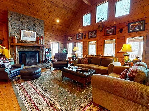 VERBALLY PENDING SIGNATURES ....LOG HOME HAVEN @ Mayo Lake! 3 BR, 2.5 BA, LR, DR, Office, Utility Room, Eat in Kitchen, Fabulous Family Rm. Pine floors, reclaimed tier poles from local tobacco barn in stair case, eat at bar, & mirror. Cabinets galore, plenty of counter space & stg areas too. Covered front/rear porches, grilling deck,breezeway to garage. 2 Car garage w/finished bonus rm, carport, asphalt drive, gentle sloping wooded lot. Enjoy view from almost every room.