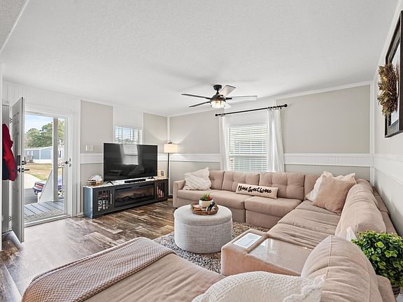 Welcome to 204 Air Stream Dr, a beautifully maintained 3-bedroom, 2-bathroom home in the sought-after Market Village community of Myrtle Beach! This spacious home offers 3 bedrooms and 2 full baths with updates throughout. The Kitchen is an open concept with updated cabinet pulls and updated ceiling lights. The laundry room has a barn door allowing easy access from the main living areas and every room has updated ceilings fans. The covered front porch is ideal for relaxing, reading a good book or just enjoying the weather! This 2022 Champion Model Rabon Home has a keyless front entry that is not only spacious but ideal for entertaining and everyday living. This move in ready home is located just minutes away from Market Common, Broadway at the Beach and the Myrtle Beach Airport. Don’t miss your chance to own this stunning home in a prime location—schedule your showing today!
