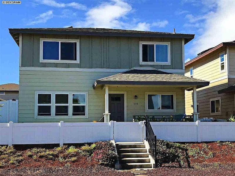 Price reduced! Bring your buyers! Charming 3 year old home in Maui Lani New Traditions built by DR Horton with beautiful mountain views! This 2 story home has 3 bedrooms and 2.5 baths cherry wood kitchen cabinets and stainless steel stove, refrigerator, and dishwasher. The washer and dryer is included! Yard is nicely landscaped and fenced, which is great for pets and home is outfitted with a security system (transferable contract). Enjoy the wonderful views while being cooled by interior ceiling fans and the natural Maui trade winds. This home has over 6 years remaining on the Builders "Ten (10) Year Limited Warranty". Home has solar water heater and is ready for additional future green features such as Photo Voltaic (Solar Panels) and an electric car. Home is also split AC system ready. Garage has cabinets, sink and steel shelving. Home is just steps away from the Traditions Spray Park and around the corner from Central Maui Regional Sports Complex Park and the highly sought after Pomaikai Elementary School. The Dunes Golf Course, Queen Kaahumanu Shopping Center Mall which houses Macys and Sears, Maui Memorial Medical Center, Kaiser, Maui Arts & Cultural Center, Costco and Kahului Airport, are less than 5 miles from property.