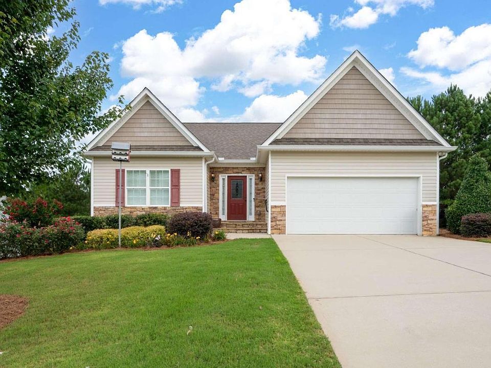 One of the newest builds in Alexandria Place full of upgrades starting with the front of this home boasting shake and stone accents! This open concept true ranch offers vaulted ceilings, gorgeous stone fireplace, new LVP flooring and upgraded lighting throughout. Fabulous Plantation Shutters on every window of the main level! The kitchen has granite countertops, breakfast bar that easily seats 4+, ample cabinetry and storage & upgraded cabinet / drawer pulls and plumbing fixtures. Dining area is open and can also be used as a flex space. Owners' suite has Trey ceiling, walk in closet and bathroom has new LVP flooring, double vanities with granite and oversized tile shower with seating and double shower heads. Spacious secondary bedrooms with ceiling fans! Full unfinished basement spanning the size of the home is stubbed for bath and ready to finish! Relax on the main level Screened porch with vaulted ceiling and ceiling fan or the large, covered patio outside of the basement and enjoy the natural views of your private property. Propane tank installed allows for a gas stove. Rain barrels are in place and functional to water lawn and raised garden beds. Fantastic location nestled in the heart of Paulding County's top school district and all of the dining, shopping and entertaining Cedarcrest road businesses have to offer! Close to I-75 & Lake Allatoona.