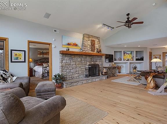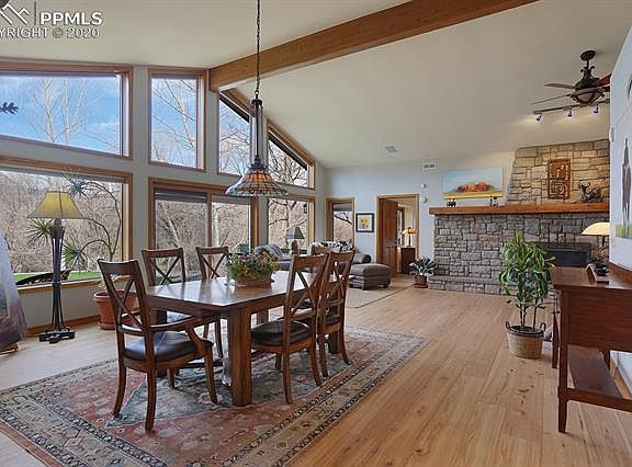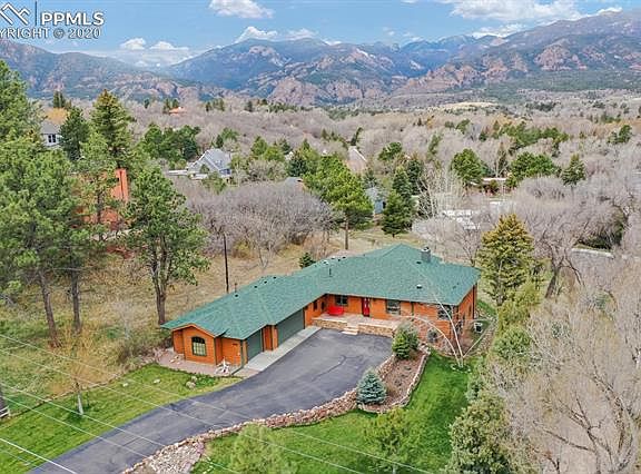Colorado Living at its best!! Beautiful setting showcasing amazing Pikes Peak Views! This re-built home has been lovingly designed & crafted from the ground up! The front entrance features a large flagstone front porch complete with a porch swing. Upon entering you are greeted with floor-to-ceiling Pikes Peak Views! The wall of windows offers Triple-Pane Pella windows & custom blinds. Enjoy evenings looking out onto the mountains while gathering around your wood fireplace featuring a custom stone hearth. The dining room offers walkout to large back patio featuring a pergola & gas fire pit, perfect for cool Colorado Evenings! The gourmet kitchen offers custom tile floors with a state-of-the-art Buderus radiant heat system, Alder wood cabinetry, granite counters, stainless appliances & walk-in pantry. Just off the kitchen & dining room is a large wet bar area with custom alder cabinets, wine rack and storage.The main level Master Suite offers 2 closets, a large bath with custom tile, large walk in shower, a jet tub & double vanities. The lower level features a spacious family room, 2 additional large bedrooms and a bath. The oversized 3 car garage has a workshop & door leading to the side yard. This home has a well for outdoor watering keeping your water bill LOW! Other upgrades include a sound system inside and out, Instant hot water, new hardwood floors, efficiency Central Air on the main level. Minutes from The Broadmoor Hotel, Hiking and Biking trails, shopping and more. Located in Award Winning District 12 schools. It is a MUST SEE!!