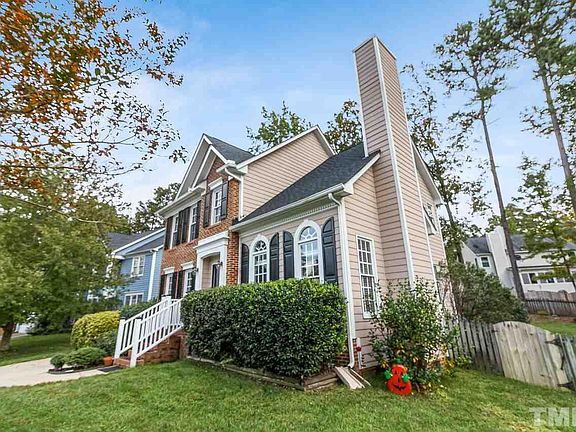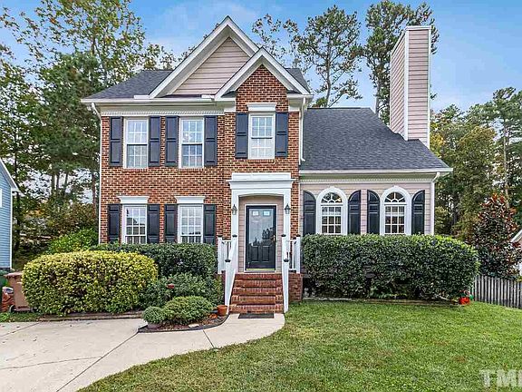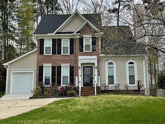 Charming Cary culdesac home in convenient location near Cary Parkway. This gorgeous brickfront home boasts cathedral ceilings and natural light from the large windows throughout. Enjoy spending time on your spacious deck and additional patio with plenty of room to BBQ in your enchanting, fenced backyard. This Well-kept home has 3BR/3BA, including 1 on 1st floor. All Bedrooms have en-suite bathrooms. Eat in kitchen with tile floor, granite counters, and tile backsplash, also with separate formal dining.