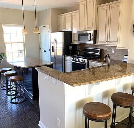From the moment you walk in the front door to the spacious entry you will see and feel the quality. Hand-scraped hardwood floors and elegant trim details, including crown molding, flow from the entry up to and throughout the open main level. The paneled dining room is directly adjacent the bright kitchen with large eat in island and breakfast bar. Upgraded cabinets compliment the granite counters and stainless steel appliance package. French doors open to the custom built composite deck perfect for grilling and entertaining. On the opposite end of the main level you will find a large living room with bay window and access to the main level 1/2 bath. Upstairs the master suite has a large walk in closet as well as a luxurious master bath with a granite topped double vanity and custom tiled shower with dual shower heads! This level also contains 2 addl well sized Br, laundry, and additional full bathroom. Integral 1 car garage and unfinished walk out basement. Low Maintenance Living