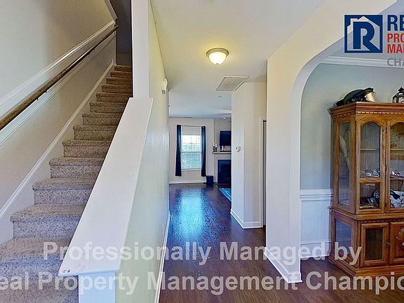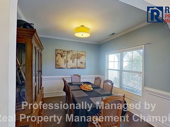 This 4 bedroom / 2.5 bath home features a well-designed floorplan with spacious rooms. Upon entering the foyer, you will find a formal dining with arched doorway, decorative wainscoting and crown molding. Beautiful wood-like laminate flooring flows seamlessly throughout the main level. Ample cabinets and counters are found in the well planned kitchen along with tile back splash, and access to the spacious laundry room that is ready for your own washer and dryer. Stainless steel appliances include side-by-side refrigerator, dishwasher, built-in microwave and glass cooktop range. The open floorplan allows the kitchen to flow into the eating area with sliding glass door access to the deck and the living room with cozy electric fireplace flanked by windows. A half bath and attached two car garage complete the main level. Upstairs features a spacious master suite with private bath with double sink vanity, soaking tub with glass block window above, step-in shower, and extra-large walk-in closet. Three generously sized guest bedrooms, a full bath and large loft/bonus room are also found on the upper level. A welcoming rocking chair front and the expansive back deck and fenced backyard will accommodate your outdoor living. This exceptional home is located on a cul-de-sac in the Peggy's Cove at Southbridge neighborhood in Sneads Ferry. Convenient to area beaches and bases. We are an Equal Housing Opportunity Management Company and abide by the term of the Federal Fair Housing Act. Pets allowed with prior approval and required pet fees. Aggressive breed list may apply. Contact listing agent prior to submitting application. No Smoking, e-cigarettes or vaping. All applicants over 18 years of age are subject to a background check, including criminal, credit, employment verification, and past tenancy.