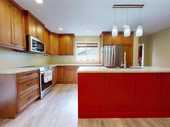 One levelAdjacent den areaBeautifully updated kitchenCentral islandModern appliancesBuilt-in display hutchPartial basement