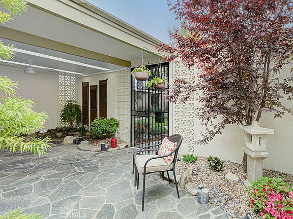 END UNIT IN QUIET AREA! This gorgeous CORDOBA floor plan has too many upgrades to list! Vacant and furniture moved out, this home has just been freshly painted (see pictures 31 - 44). The entrance to this fabulous light and bright home features a large patio with natural stone tiling, beautiful landscaping, and a fountain that creates a relaxing and private oasis. As you enter the home, you'll truly appreciate the owner's attention to detail with many upgrades throughout including central air, inside laundry, high-end laminate flooring, dual pane windows, plantation shutters in both bedrooms, 4 ceiling fans, and several skylights that bring in plenty of natural light. Relax in the large living room with a view of the patio, and for those cozy nights in, you'll love the electric fireplace! The wall unit can be left or removed (buyer's choice). The fully upgraded kitchen features newer appliances, self-closing cherry wood cabinets/drawers, and quartz counter tops. This unit features 2 bedrooms and an extra-large spa-like bathroom featuring a beautifully tiled walk-in shower with it's own remote-controlled skylight! There's a separate bathtub to relax in, upgraded vanity with quartz counter-top, and a newer Washer Dryer. The original atrium area has been converted into a den, perfect as an office or craft room. This unit is conveniently located near Gate 2 for quick access to the areas many ammenities. Laguna Woods Village features 5 swimming pools, 7 clubhouses, 3 gyms, craft studios, 2 gorgeous golf courses (27-hole and 9-hole par 3), 250 social clubs, a performing arts center, pickleball, tennis courts, equestrian trails, stables, fare free bus service, golf cart paths, 24/7 manned security gates, lawn bowling, bocce ball, pickle ball and much more. Conveniently located near beautiful Laguna Beach, shopping malls, medical services, hospitals, and the 5 freeway.