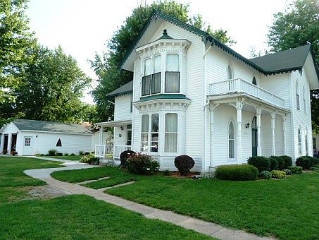 Step back into the past with this Victorian home featuring 12' ceilings, chapel windows & 3 porches....The chapel window theme is carried throughout the home with cubbies for phone, door bell, etc. Double front doors on the front porch open into the entry way & open stairway. Large living room across west side of home with a formal dining room & bay window along the east is separated by a hallway with open stairway to the second story bedrooms. Natural, original woodwork can be seen throughout the home. An updated 3/4 bath is located between the living room & kitchen. The SE porch enters the kitchen area which also includes the laundry. A screened-in porch,accessible from the living room, is an ideal place to spend summer evenings without the bugs! You will enjoy many hours on the porches that overlook a well manicured yard featuring perennials, trees & attractive garden. A 2+ car modern garage offers plenty of room for your vehicles & lawn care storage. Many carpenter Gothic revival characteristics can be seen in & out side of this home.