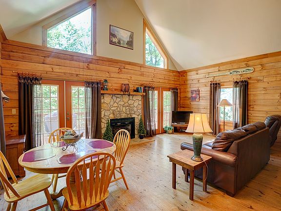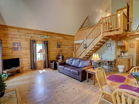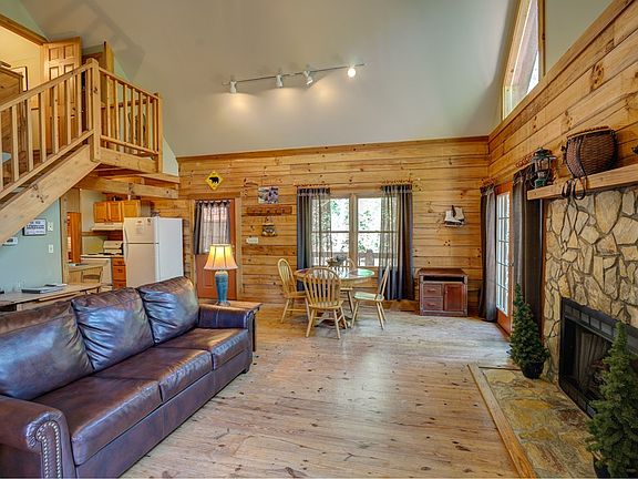 Located within a mile from the Great Smokys Nat'l Park entrance, this fully furnished 2 bedroom 2 bath log cabin is the perfect opportunity to grab an income producing rental investment! Main level features vaulted ceiling with hardwood floors thruout, stone gas log fireplace and double doors leading out onto the large covered front porch. Main level also features galley style kitchen, dining area, living area, laundry, bedroom and bath. Upstairs is the second master large enough for two beds and second ensuite bath. Cabin has lots of FLAT parking, side porch for easy entry and a private hot tub nestled in the trees! Long range views in the winter and privacy in the summer, this cabin is appropriately named "Moonstruck at Deep Creek" Bustling downtown Bryson City is within 3 miles and in the heart of the Great Smoky Mountains........if you love the great outdoors Bryson City is where you will want to be!