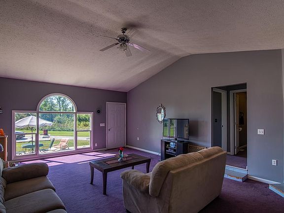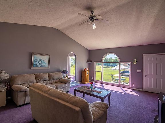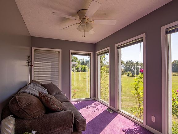 This all brick home is situated on 3.69 acres and has so much to offer. Vaulted ceilings and natural light greet you stepping into the oversized living room. The kitchen and dining room area flow together and offer an abundance of cabinets space. The master bedroom has a marble gas fireplace and the master bath has a walk-in closet, a jet tub, and separate shower. There is a sunroom to sit back and relax in just off the living room. The home also features an additional bedroom and another full bath. There is a large back patio, and the backyard has plenty of room for children and pets. A 24x30 slab with electric and water are waiting for your workshop or extra garage. Also an updated heating/cooling system and a updated hot water heater. With a little TLC, this home is move-in ready!!