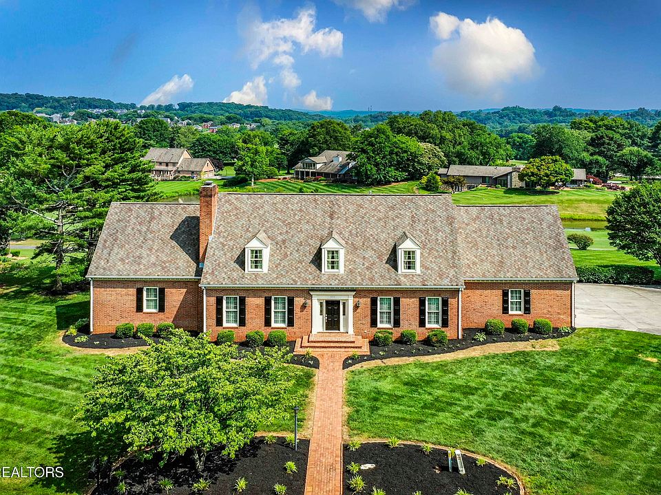First time on the market! This stunning all-brick custom-built home sits on .89/acres and boasts 189' of golf course frontage on the #4 fairway & green at Fox Den Golf Course, offering breathtaking mountain views and an unparalleled lifestyle. Step inside to find 9' ceilings and elegant sand & finished hardwood floors throughout the main level. The formal living room features a gas log fireplace framed by built-in shelves, while the formal dining room provides a sophisticated space for entertaining. The great room showcases amazing views and flows seamlessly into the remodeled kitchen (2013), designed for both style and function. Enjoy quartz countertops, a center island, gas cooktop, wine fridge, refrigerator, dishwasher, convection microwave & oven combo and a 2nd oven, tiled backsplash, breakfast bar, pantry, and a separate beverage bar~ a true chef's delight! The main level also features a plush Primary Suite & Bath with 2 closets and a walk-in shower. Upstairs, a second primary suite offers its own private bathroom and a bonus room that could be used as a living room, perfect for a quiet retreat. Two additional bedrooms, a full bath, and a second bonus room with generous space complete the upper level. Outside, unwind on the new composite deck, savoring your morning coffee or peaceful evenings with stunning golf course and mountain views. This exceptional home blends elegance, comfort, and a prime location ~ don't miss the chance to make it yours!