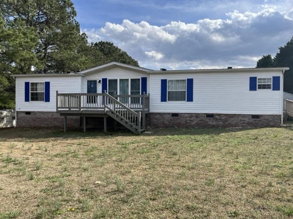 3/4 Acre Homesite located between Clayton and Fuquay Varina with easy Access to I-4! Permanent foundation added and is FHA/HUD compliant! New Roof in 2020. New Heat Pump in 2017. New LVP flooring in the main living areas. Spacious eat-in kitchen offers crown trim, tile backsplash, ceiling fan, painted flat panel cabinets, corner stainless steel sink with industrial style pendant lighting and 2 windows over the sink. Owners bedroom has new carpet, 3 closets & adjoins the full bath with New Re-Bath Walk-in Shower installed in 2020. Deck and newer ramp lead to side porch for handicap access. Flat yard with small fenced-in area for pets and/or children. 2nd wheelchair ramp leads to grilling deck & access to enclosed back deck. Storage shed equipped with 220V wring and area for lawn equipment. Non permitted guest house on the property is included but needs renovation. It has been cleared out and has a living area, full bath, kitchen, bedroom, electricity and window A/C Unit.