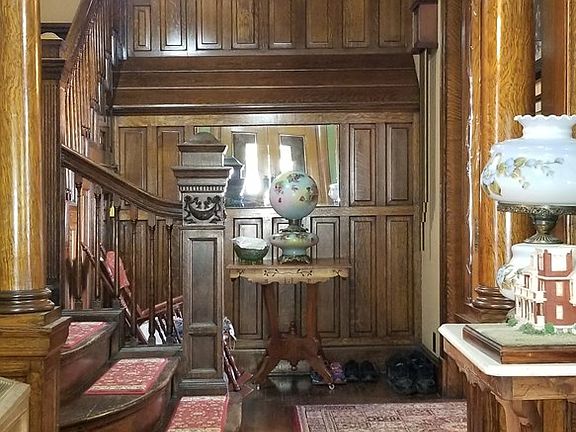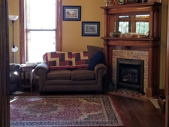 This historic Albia home was built in 1900 and is known in the Albia area as the Powell house originally built for a doctor and his family. Throughout the years the historic attributes of this house have been preserved while experiencing modern upgrades and a lot of care and maintenance. The beautiful front porch offers lots of space for relaxing, leaded glass windows, and a stunning front door leading to the front entryway of the home. The entry off the front porch has a nice breezeway and features the original cross and cornerstones from St. Mary's Catholic Church, which used to be located next door, and have stayed with the property throughout the years of ownership. Glass double doors lead you into the heart of the home. The main floor highlights tall ceilings and original woodwork in the floors, pocket doors, trim and window casings, and beautiful stained-glass window inserts. The main living room and additional sitting room each have an eye-catching gas fireplace as a focal point. Many windows throughout the main floor make the space feel open and bright and emphasize the spaciousness of this home. Between the main living room and formal dining are stunning pocket doors highlighting the character and charm of this home. The formal dining area has a beautiful hardwood floor pattern and good space for a large dining table. A full bath with a nice claw foot tub and heated tile floors is located between the dining and kitchen and has a connecting doorway around to the main floor office and sitting room. The spacious kitchen features a mix of cherry wood and black wood cabinets, stunning quartz countertops, bar seating on the island, a deep farmhouse sink and heated slate tile floors. Just off the kitchen is a small mudroom with a side entrance from the west side of the house. On the south side of the kitchen is a back staircase to the second story and a connecting brick breezeway to the 2-car garage with main floor laundry and a second built-in oven. Walking up the stunning oak staircase to the second story you'll notice striking stained glass window art on the landing. Continuing up the staircase you'll find the entire floor has original wood floors with a bedroom and ¾ bathroom to the left and the remaining bedrooms to the right. The second bedroom is large with a nice sized closet and has washer and dryer hookups if the next owner wanted laundry on the second level. This bedroom connects to another bedroom currently being used as another living room with an attached ¾ bathroom. The next bedroom offers nice space with a large closet and private bathroom, and the last bedroom on this level is large with a nice closet. The stairs to the third story leads to an abundance of additional living space. The carpeted living room with extra storage closets takes up the majority of the third story. A half bathroom, gorgeous solid marble side table, and lots of windows make the space homey, airy and bright. A separate closet houses the central ac unit. A large office off the living area offers fantastic views of the town square, library, and movie theater. The full basement has an abundance of storage space, houses 3 hot water heaters, 2 boilers, 2 electrical panels, door to the exterior of the home, and a separate workshop area with a half bathroom. Other qualities of this home include heated tile floors in all bathrooms, a new roof in 2019, new wiring and plumbing in the last 10 years, tuckpointing in the last 10 years, Fiber Optic internet, central ac, 5 total bedrooms, 6 total bathrooms, and 4,135 total square feet of finished living space. The exterior features beautiful brickwork, a sizable yard with hedges for privacy, 2 car attached garage, small storage shed, and patio area. This property has something for everyone so call Wanda & Allyson today to set up a time to tour this historic Albia home!