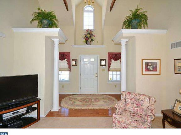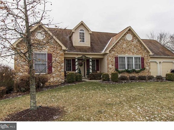 One floor living at its finest awaits you in this spacious ranch style home in Amity Township! Pride in ownership is evident as soon as you walk up to the home. Stone front with a covered porch leads you into the spacious entry with hall closet. The great room features vaulted ceilings, exposed beams, ceiling fan and stone gas fireplace with beautiful plank vinyl flooring which flows into the completely updated kitchen. Refinished white cabinetry featuring new hardware, custom floors, glass tile backsplash, stainless sink and faucet, large butcher block island with seating, recessed lighting, and newer stainless appliances will delight the chef in your family. Sliders lead to the deck with views of the tree lined yard and valley beyond. The large formal dining room boasts a triple window, vaulted ceilings and custom light fixture - sure to accomodate all your entertaining needs. To the left of the main living area are the two guest bedrooms serviced by the hall bath and large linen closet. The Master suite features new carpet, walk in closet and deep linen closet. The en suite master bath was just renovated, and features dual vanity with marble countertop, a white subway tile backsplash, walk in shower, and custom flooring. As you finalize your tour of your new home, don't forget to take measurements of the unfinished basement so you can start planning out your future finished space .