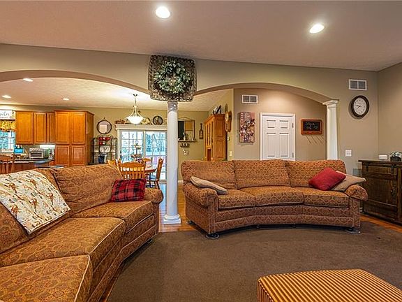204 Bicker Road sits on a little over 2 acres in Winfield Township, This large flat country lot has a beautiful classic colonial home that spreads out with an inviting porches and attached garage, as well as an above ground pool , a shed and a heated wood shop equipped with 200 amp service. This lovely home was built in 2012 and has a large open floor plan that consists of 5 bedrooms, a first floor master suite, first floor laundry and powder. Everything you need right on the main floor. Stunning details like high ceilings and columns , hardwood floors and a gas fireplace make the space warm and homey. There is also tons of storage and a finished walk out basement. This place is made to entertain inside and out!