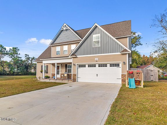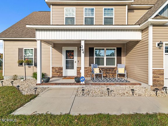 Welcome home to 204 Bodmin Court! This adorable 4 bedroom 2.5 bathroom home with a 2-car garage is located in Jacksonville, NC minutes away from MCAS New River. Upon entering you are greeted with the formal dining room; perfect for hosting during the holiday season. As you move through the first level you will find, a beautiful living room complete with high ceilings and a fireplace. The kitchen is off of the living room and features floating shelves, stainless steel appliances and a pantry. Access to the laundry room, half bath and garage as well as to the spacious fenced-in backyard can also be found in the kitchen. The primary bedroom can also be found on the first floor. Here you will find an en suite bathroom complete with a double vanity, separate bathtub and shower, and a nice-sized walk-in closet. Upstairs there are three spare bedrooms that are the perfect size to suit your needs, as well as a spare bathroom. This home won't last long, schedule your showing today!