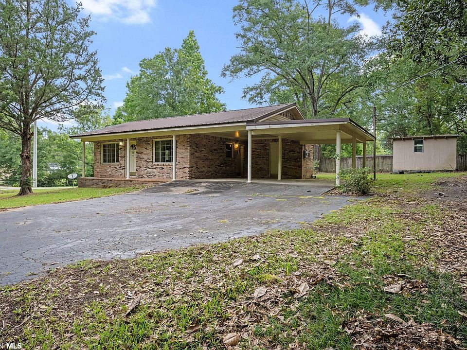 Not USDA, FHA or VA eligible. Situated on a nice tree-shaded corner lot, this home features 2 bedrooms, 1 bath, kitchen living, dining, den, metal roof and double carport. Perfect for a starter home or rental property! Easy to show, won't last long!