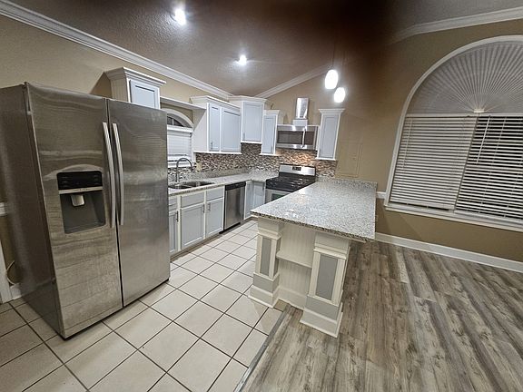 The open kitchen is fully equipped with a central island and sleek stainless steel appliances refrigerator, dishwasher, gas stove, and range hood perfect for cooking and entertaining. A linen closet with a stacked washer and dryer adds everyday convenience, while central HVAC keeps you comfortable year round. Off street paved parking is included.