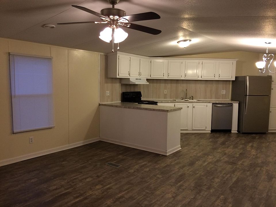 This home is located on Lot #50 in the Briarmeade Estates community adjoining the Briarmeade Golf Course in Glencoe. It is a beautiful completely rehabbed mobile home featuring a large master suite, walk in closet, new stainless appliances, and a large deck. Applicants must clear a background check and have a combined gross monthly income of $3,000. Water, Sewer & Trash included in rent