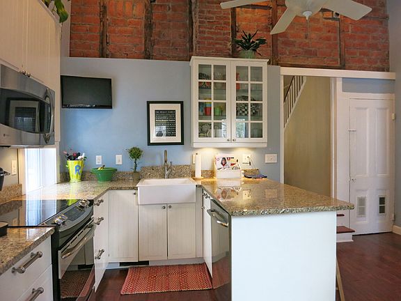 Newly renovated turn-of-the-century duplex backs to woods and Swan Creek. NEW KITCHEN with exposed brick, stainless appliances, crisp white cabinetry, farm sink and granite counter tops!