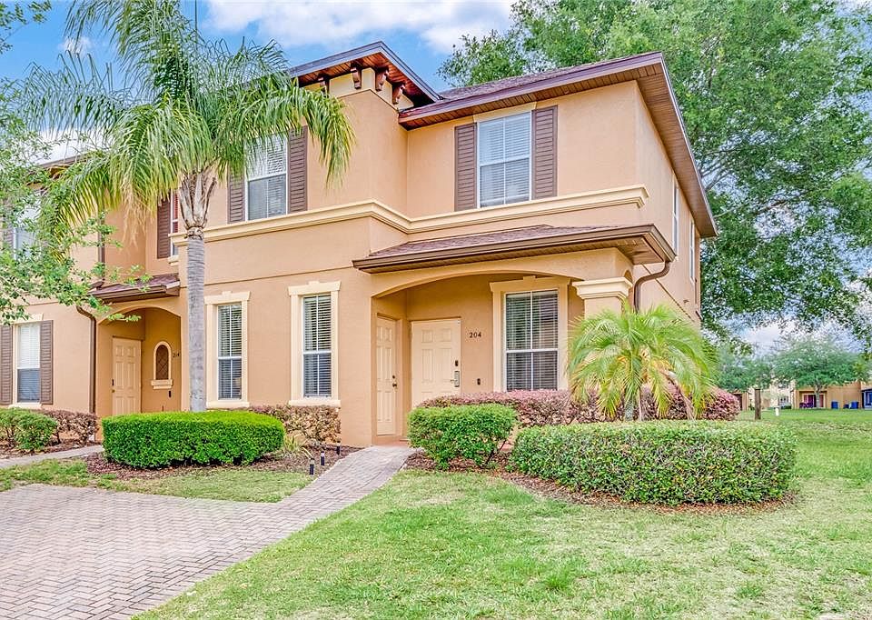 **ONE-OF-A-KIND VACATION TOWNHOME & RENTAL OPPORTUNITY!!** Regal Palms at Highland Reserve in Davenport is an AMAZING 24- HOUR GUARD GATED COMMUNITY with unbelievable *RESORT-STYLE* amenities zoned for SHORT TERM RENTALS! This 4 bedroom, 3.5 bath END-UNIT townhome comes **FULLY FURNISHED** with a refreshed kitchen (new cabinets and countertops!), updated bathrooms, interior paint, a covered lanai and private balcony off the primary suite with POND VIEWS! The living and dining areas are light and bright with wood floors and sliding glass doors out to the lanai. A breakfast bar for casual dining or entertaining connects the space to the kitchen which has been updated with modern cabinetry, granite counters, stainless steel appliances and a stylish tiled backsplash! The main floor also delivers a junior suite with a ceiling fan and twin windows for great natural light. Upstairs you will find two more guest bedrooms and a generous PRIMARY SUITE with access to the private balcony, WALK-IN CLOSET and en-suite bath. The Regal Palms HOA includes Lawn Care, Basic Cable, Internet, Pest Control, Trash, Roof Replacement, Building Exterior Maintenance and plenty of parking! This vacation community gives owners and guests AMAZING AMENITIES such as Tropical Paradise Pool area, Pool Slide, a LAZY RIVER, Fitness Center, Frankie Farrell's Pub & Grille, a Classic Style Ice Cream Shop, a HUGE ARCADE & PLAY AREA and so much more! Located just minutes from all the popular attractions; Disney, Universal Studios, Seaworld, Aquatica, ESPN Wide World of Sports, Highlands Reserve Golf Club, Celebration Golf Club and tons of restaurants, shops and activities. Call today for your private tour and make Capri Dr your new home away from home!