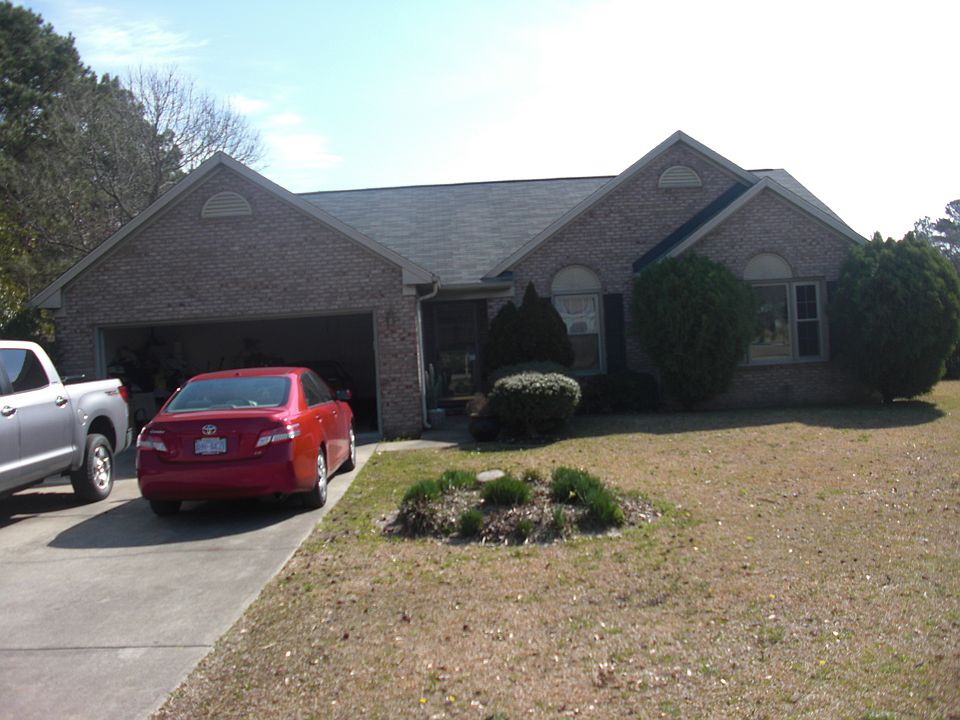 GREAT FAMILY HOME!!! Spacious 4 bedroom brick home in nice residential neighborhood on huge lot. House has 2 full baths, large open kitchen, large living room with hardwood floor and 2 skylights, big deck perfect for entertaining, 2 car garage, paved driveway, big storage shed, new roof. Close to Camp Lejeune, walking distance to the mall and restaurants. SERIOUS INQUIRIES ONLY PLEASE