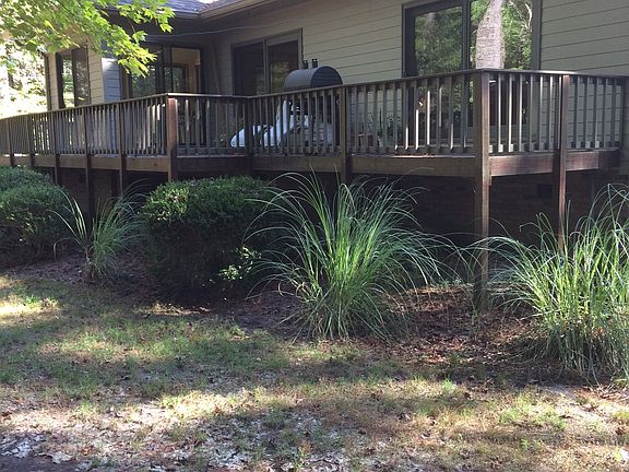 House is built with 2x6 exterior walls and 6" insulation for energy efficiency. James Hardy fiber cement lap siding with factory baked on color. 30 year Certainteed dimentional shingle with transferable warantee. HVAC system is dual fuel heat pump. The house has covered front porch and wood deck across back of house. Interior has great room and entry foyer with vaulted wood ceilings.Three skylights and eight foot sliding door to deck give room plenty of light. 12x14 kitchen has custom cabinets, island, two door pantry and adjacent eating area. Formal dinning room adjacent to great room opens to sun room with four sliding doors to deck. Master bedroom is 12x16 with 8 foot sliding door to deck. Master Bath has shower and walk in closet. Hall leads to two more bedrooms, bathroom and laundry room. All rooms except entry and great room has nine foot ceilings. Ceiling fans through out house. Floors are tile, oak hardwood and carpet. Wood trim, oak doors, cabinets are all finished with 7 step natural finish. Three car garage has a stairway to attic storage. There is a 16x24 storage. building with 50 amp electric service. This property is located in beautiful Pamlico Plantation, a gated community governed by a financially sound property owners association. Amenities include clubhouse,swimming pool, tennis court 180 slip marina WITH A BOAT SLIP PROVIDED TO EACH OWNER. Yearly assessment is $1250.00. Storage yard provided to park boats and Rvs. .