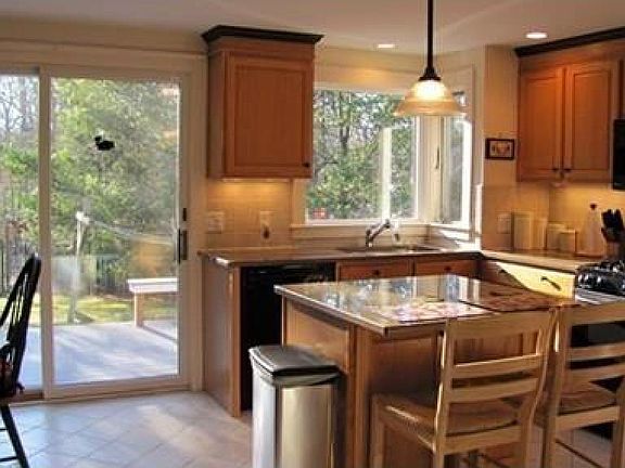 Meticulously maintained, this Cape-style home has pizzazz and offers many unique and custom features. The updated kitchen - bathed in morning sunshine - offers an island and computer/desk area, and opens onto a large deck overlooking a private, wooded yard A most serene setting for your summer morning coffee. Dramatic living room with cathedral ceiling, palladium window, turned staircase to 2nd floor, and French doors to the first floor bedroom (currently used as a den). Oodles of features - dining room with gas fireplace, 2009 mudroom addition (so convenient!), bathroom with frameless glass walk-in shower, sparkling hardwood and tile flooring throughout, loads of recessed lights, economical gas heat and central AC too. Need more space? Check out the basement with cozy wood stove, and plenty of space for a game room and home gym. Llist of home improvements available. Square footage of unheated mudroom and basement NOT included.