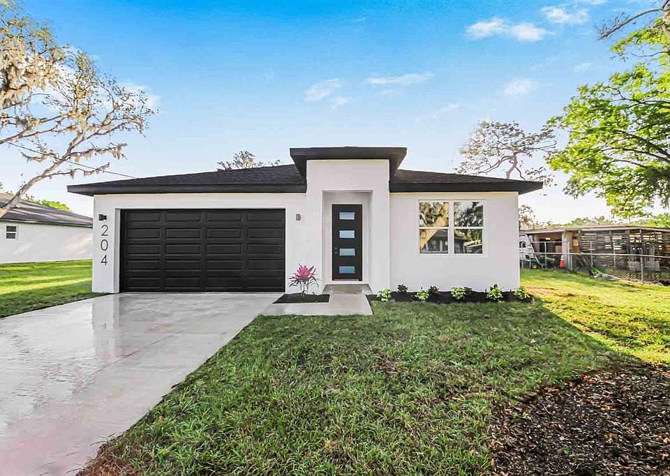 Welcome to your dream home in Auburndale, Florida! This beautiful brand New Construction home sits on a sprawling lot of almost an acre, providing ample space for outdoor activities, gardening, and entertaining. As you step inside the home, you'll be greeted by a spacious and inviting open floor plan that is perfect for modern living. The main living area features high ceilings, large windows that flood the space with natural light, and beautiful laminate floors. The kitchen boasts stainless steel appliances, plenty of counter space, and a large island. The adjacent dining area offers ample space for family meals and dinner parties with friends. The home has 3 bedrooms and 2 bathrooms with oversized porcelain tile. The master suite has a large walk-in closet double sink vanity and tray ceilings that reach over 10 feet high. This home sits on almost an acre of high and dry land with mature oak trees that provide refreshing shade. The large yard is perfect for a variety of outdoor activities and enjoying the Florida Sunshine. This home is conveniently located just a short drive from some of the best beaches in Florida, Disney world, the Polk Parkway and theme parks. Don't miss out on the opportunity to own this beautiful home. Contact us today to schedule a showing!