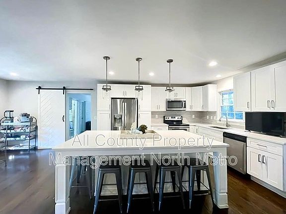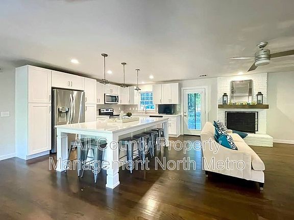 NOW OFFERING $500 OFF FIRST MONTH'S RENT (FURNITURE OPTIONAL) Welcome to your new home in Downtown Alpharetta! This newly renovated brick ranch includes 4 spacious bedrooms and 3 full bathrooms, a camper hangout, game room, and chef's kitchen. It a half-mile to downtown Alpharetta and pet friendly. Located in the recently revitalized city of downtown Alpharetta, this property is set on a quiet cul-de-sac on an acre of wooded land. It offers a private guest experience. The property features access to the "Happy Camper" in the backyard, a retro hangout area suitable for activities such as barbecues, using the fire pit, or enjoying the outdoor space. Inside, there is an open living space with a country-chic style. The kitchen is modern and bright, equipped for home cooking needs, and includes cafe-style seating options. The house also has a separate playroom with toys, games, and a smart TV for children. Downtown Alpharetta offers shops, restaurants, galleries, and historical sites. Brook Street Park and the town green host numerous events such as outdoor concerts, festivals, holiday events, and art fairs. The farmers' market operates every Saturday morning with over 130 vendors. Nearby parks and biking and hiking trails, including the Alpha Loop, provide opportunities to enjoy nature. Other nearby attractions include Ameris Bank Amphitheater (1.3 miles), Avalon Shopping Center (2.7 miles), Wills Park Equestrian Center (2.0 miles), North Park Tennis and Pickleball Center (3.3 miles), Waggy World Paw Park (1.3 miles), and Painted Horse Winery (3.0 miles). Locally & professionally managed by All County Property Management North Metro, which offers a streamlined leasing process with self-guided tours available. Furnished optional - owner can remove all furniture!