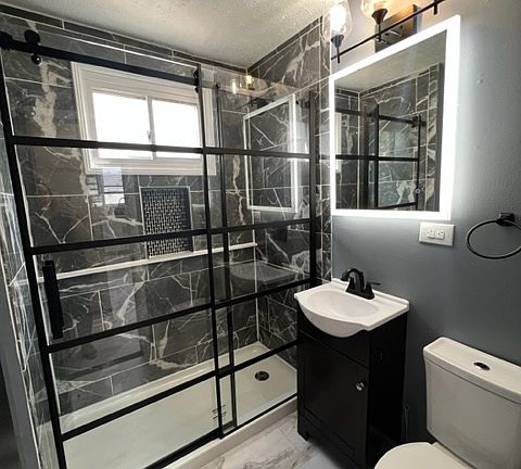 Bedrooms furnished with bedsLaundry room in buildingNew windows with blindsStainless steel appliancesLarge bathroom with showerFully equipped kitchenGranite countertops