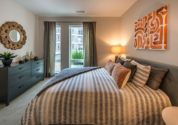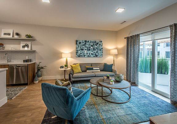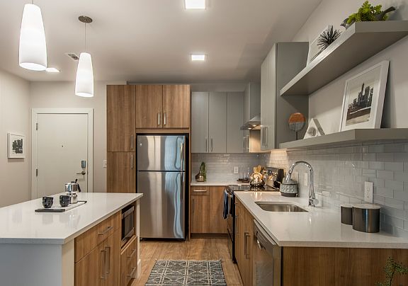 Spacious one, two, and three-bedroom apartments Designer kitchens with quartz countertops, subway tile backsplash, and kitchen islands* GE Energy Star stainless steel appliances Custom two-tone cabinetry with soft-close cabinets and drawers Expansive, energy-efficient windows Hardwood-style flooring in living areas Gas fireplace* USB outlets in every room Walk-in closets Spa-inspired bathrooms with soaking tub Walk-in showers* Extra high ceilings up to 9 feet Washer/Dryer included Juliet balcony* Pool, nature, and courtyard views* Engage smart locks *In select units