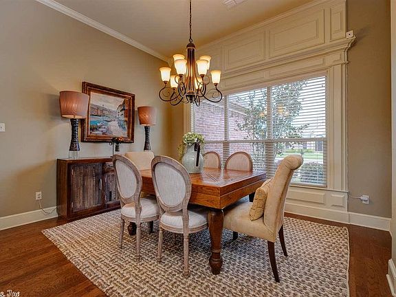 Beautiful, open concept, 4 bedroom home in The Quarters addition of the Country Club of Arkansas. This one level, split floor plan home features crown molding, beautiful hardwoods in main living areas, high ceilings, lots of natural light and neutral paint colors. Kitchen is complete with granite counter tops, stainless appliances and pantry. Level backyard is fully fenced and has a covered patio. Impeccably maintained and move in ready!