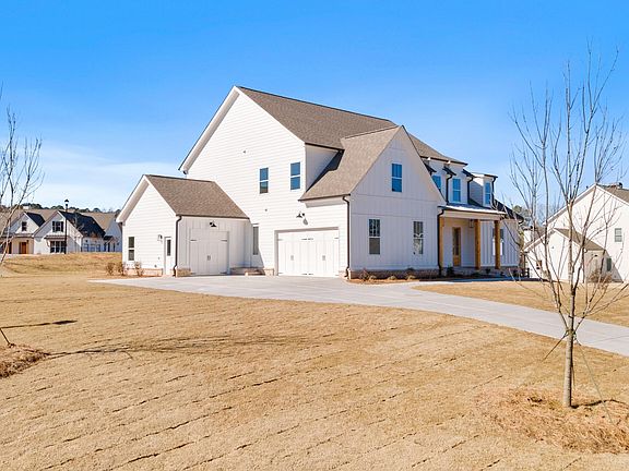 Welcome to Creekview Falls! This Stunning New Construction Modern Farmhouse offers a welcoming front porch that leads to the open concept living spaces, 4 bedrooms, 4.5 bathrooms, and an unfinished basement with side daylight and plenty of room to expand. The Sun-drenched fireside family room opens to the breakfast area and kitchen. Kitchen features include SS KitchenAid appliances, Quartz countertops, farmhouse sink, walk-in pantry, and a large island perfect for entertaining family and friends. Tucked away between the garage and kitchen, hide the mess in the mudroom and laundry area. Off of the kitchen, relax on the covered rear porch with fireplace and grilling area. The Primary suite is located on the main level. Primary bath features modern tile, an oversized frameless glass shower, soaking tub, dual vanities, and expansive walk-in closet. Upstairs, three additional bedrooms with attached private baths, plus a large media room, and abundant attic storage. Creekview Falls is just 10 minutes to Canton Marketplace, Downtown Canton and interstate 575, approximately 15 minutes to Woodstock and 20 minutes to Milton. This is one of the final opportunities to be part of the Creekview Falls community.
