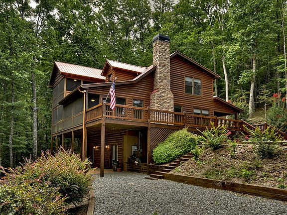 Beautiful, stunning home with end of road quiet privacy and mountain views on 2.2 AC, and hard to find 2 car garage in the heart of the Aska Adventure Area. This 4/3 home is in the high end gated community of Raccoon Ridge, close to Lake Blue Ridge, could be full time home, or a rental property where you could lock you toys away in the garage ready for your vacation in the mountains. Screened porches on the main floor and master bedroom balcony provide year round enjoyment and outdoor living area. In the cooler months, gather around the outdoor fire place on the main floor screened porch. Enjoy everything this home has to offer.